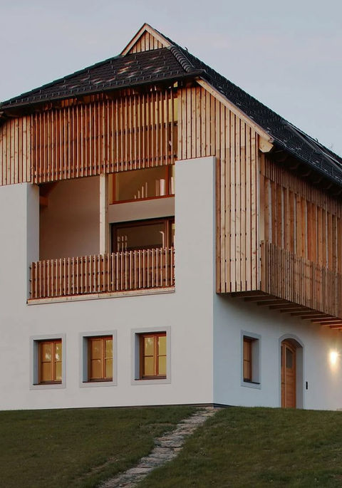 Diese Materialien sind nicht nur nachhaltig, sie tragen mit ihren sensorischen Eigenschaften auch zum Wohlbefinden im Haus bei. Möblierungen aus Heuballen sind eine Hommage an die entbehrungsreiche Feldarbeit unserer Mitglieder.